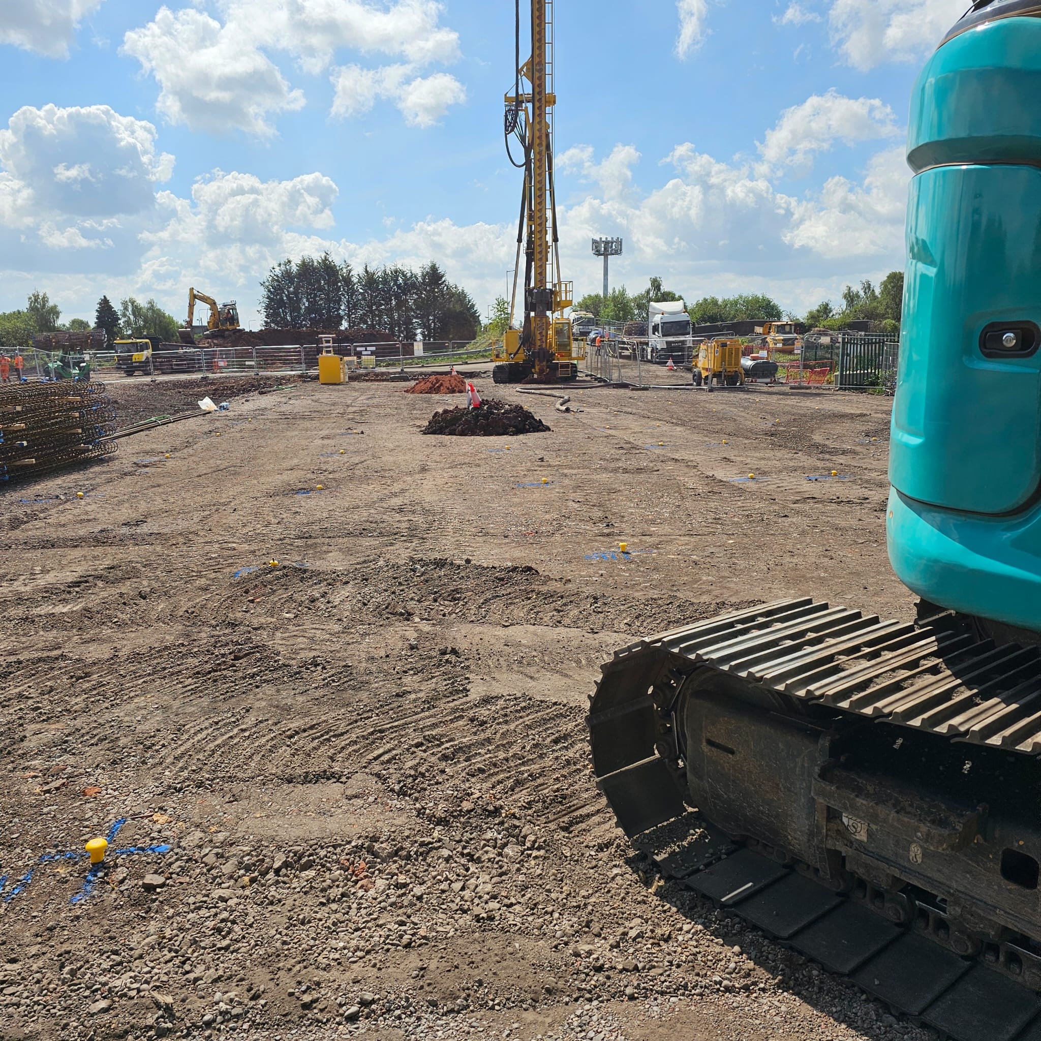 To meet this demanding deadline, Midland Rock adopted a meticulously phased program coordinated with Network Rail and other site stakeholders. Advanced excavation machinery, GPS-guided grading, and rigorous quality assurance ensured efficient, safe progress with minimal disruption. Machine-only work minimised contamination risks, while active contamination management and environmental controls maintained site compliance. The borrow pit excavation and clearance provided space for on-site material stockpiling, reducing waste removal and improving sustainability. Road formation and drainage works were completed to exacting standards, ensuring a reliable platform for subsequent piling operations and road construction.