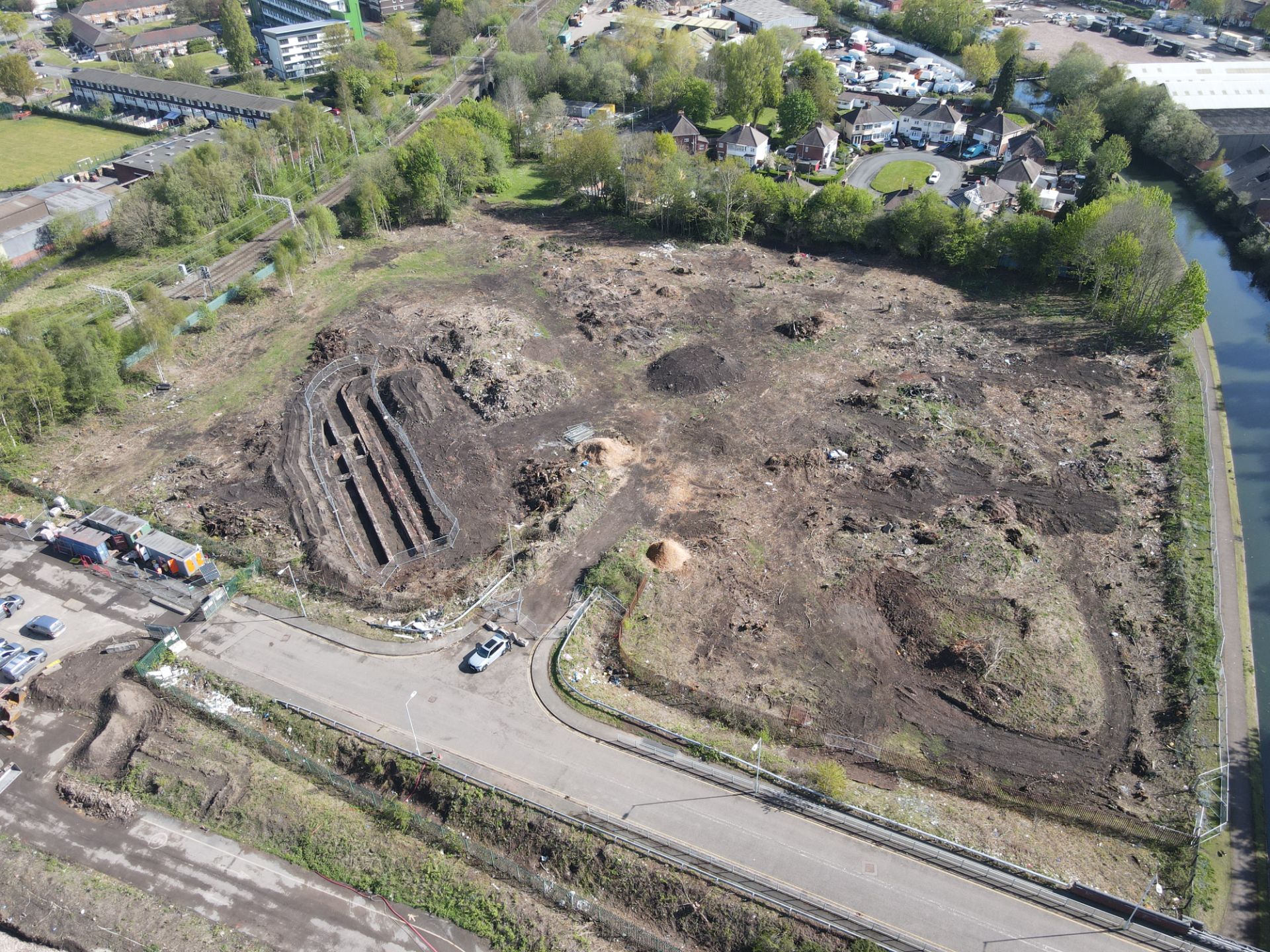 Midland Rock successfully completed complex earthworks on a challenging brownfield canal siding site next to a live Network Rail line—all within a tight 4-week deadline. The project involved machine-only excavation of old foundations, cut and fill operations, backfilling, and extensive site clearance including removal of rubble and tree stumps. We also excavated a borrow pit, installed piling mats, realigned roads, and excavated drainage channels. Our precise planning and use of advanced technology ensured safe, efficient progress amid contamination and underground utilities, delivering a high-quality groundwork solution for the canal-side redevelopment.