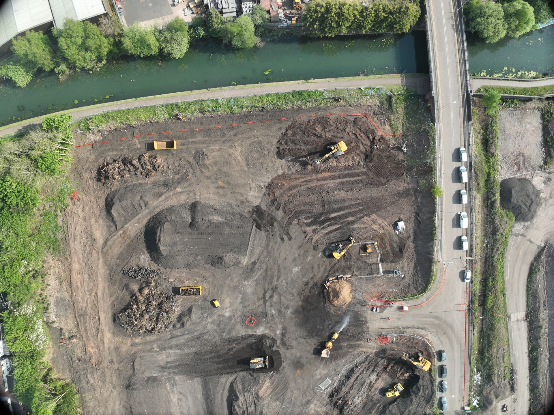 Despite challenging ground conditions and the constrained working environment, Midland Rock delivered the full scope on schedule within the 4-week timeframe. Seamless collaboration with adjacent contractors and Network Rail enabled smooth project flow without downtime. The high-quality earthworks, foundation excavation, and clearance works provided a strong, stable base for ongoing canal-side redevelopment. This project highlights Midland Rock’s expertise in rapid, safe, and environmentally responsible civil engineering solutions on complex brownfield sites.