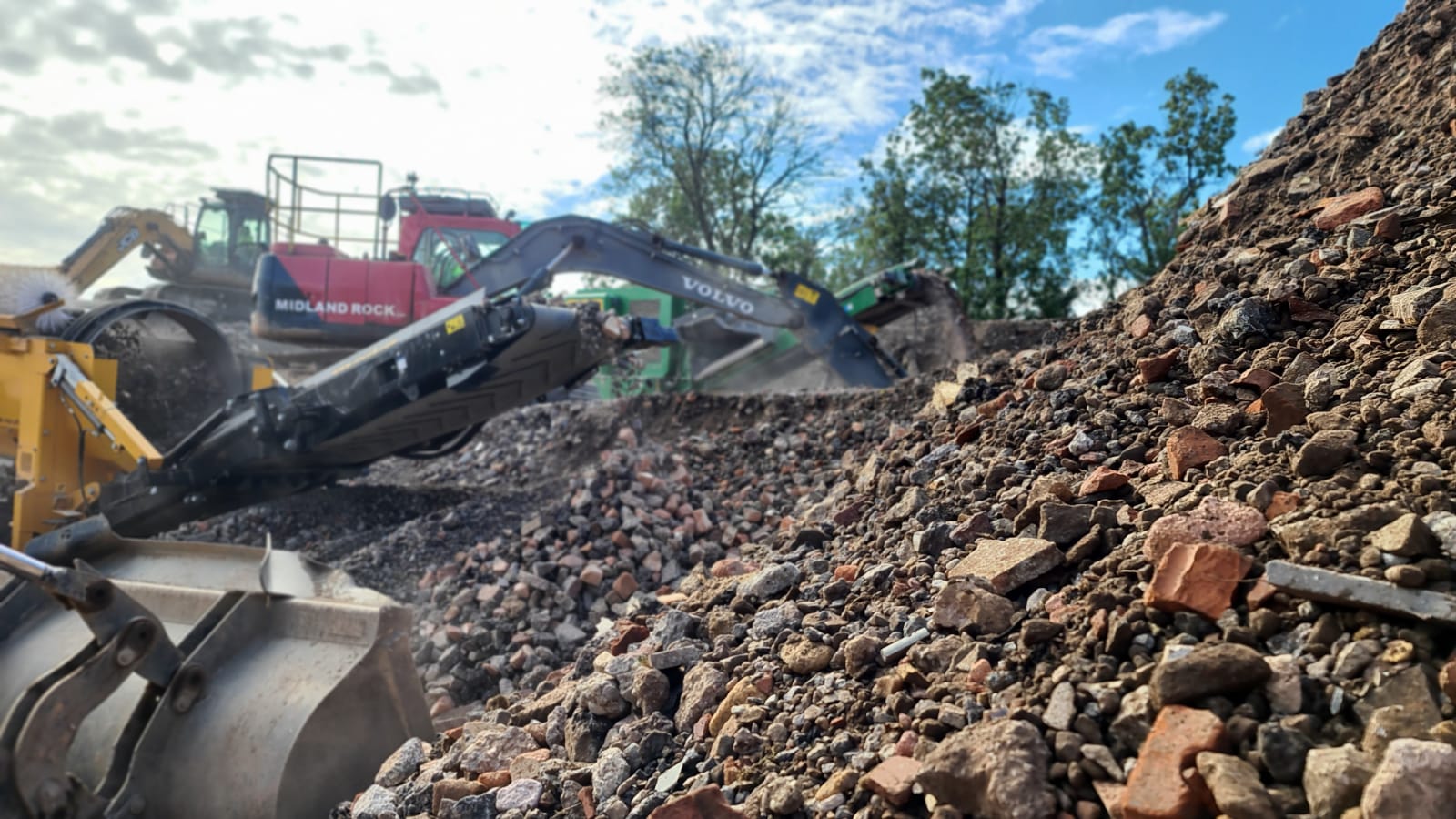 On-site and off-site recycling of construction and demolition waste, including concrete, hardcore, soils, and green waste. We maximise recovery rates to minimise landfill and provide certified recycled aggregates where possible.